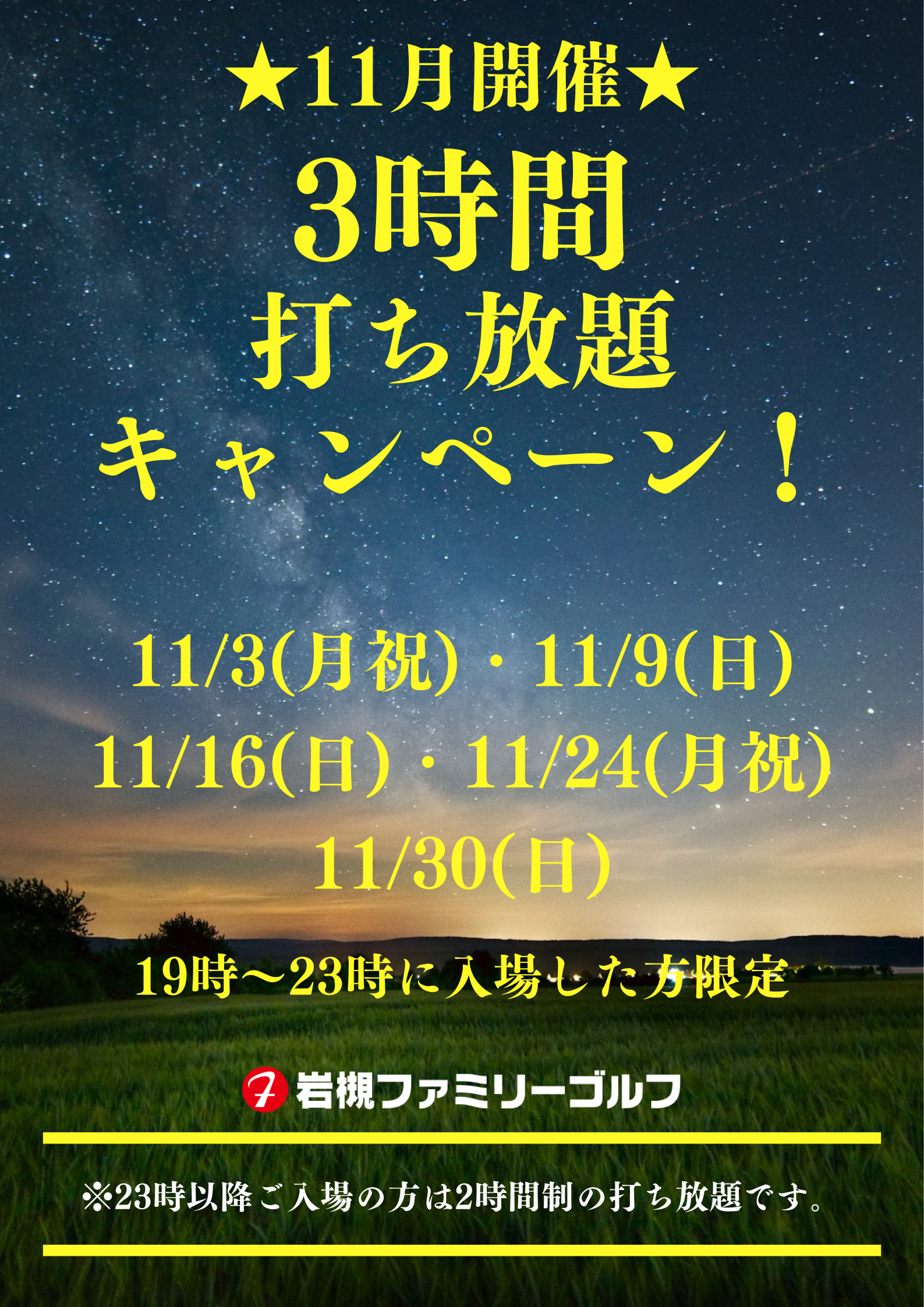 2025年10月26日 【11月対象日夜】3時間制打ち放題キャンペーン