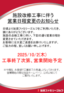 日頃より加須ファミリーゴルフをご利用いただき、誠にありがとうございます。