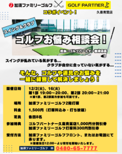 12月もゴルフパートナー久喜青葉店とのコラボ企画「ゴルフお悩み相談会」を開催いたします❗️📣