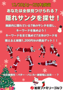 もうすぐクリスマス!加須ファミリーゴルフではクリスマスに因んで以下2種類のイベントを開催いたします!
