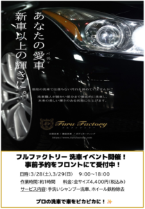 3/28(土)、3/29(日)限定でFuru Factory(フルファクトリー)様による洗車イベントを開催いたします!