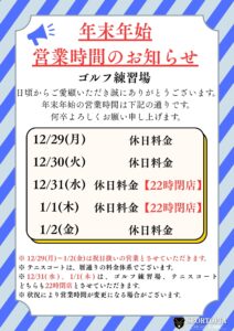 年末年始の営業時間は添付写真の通りでございます。