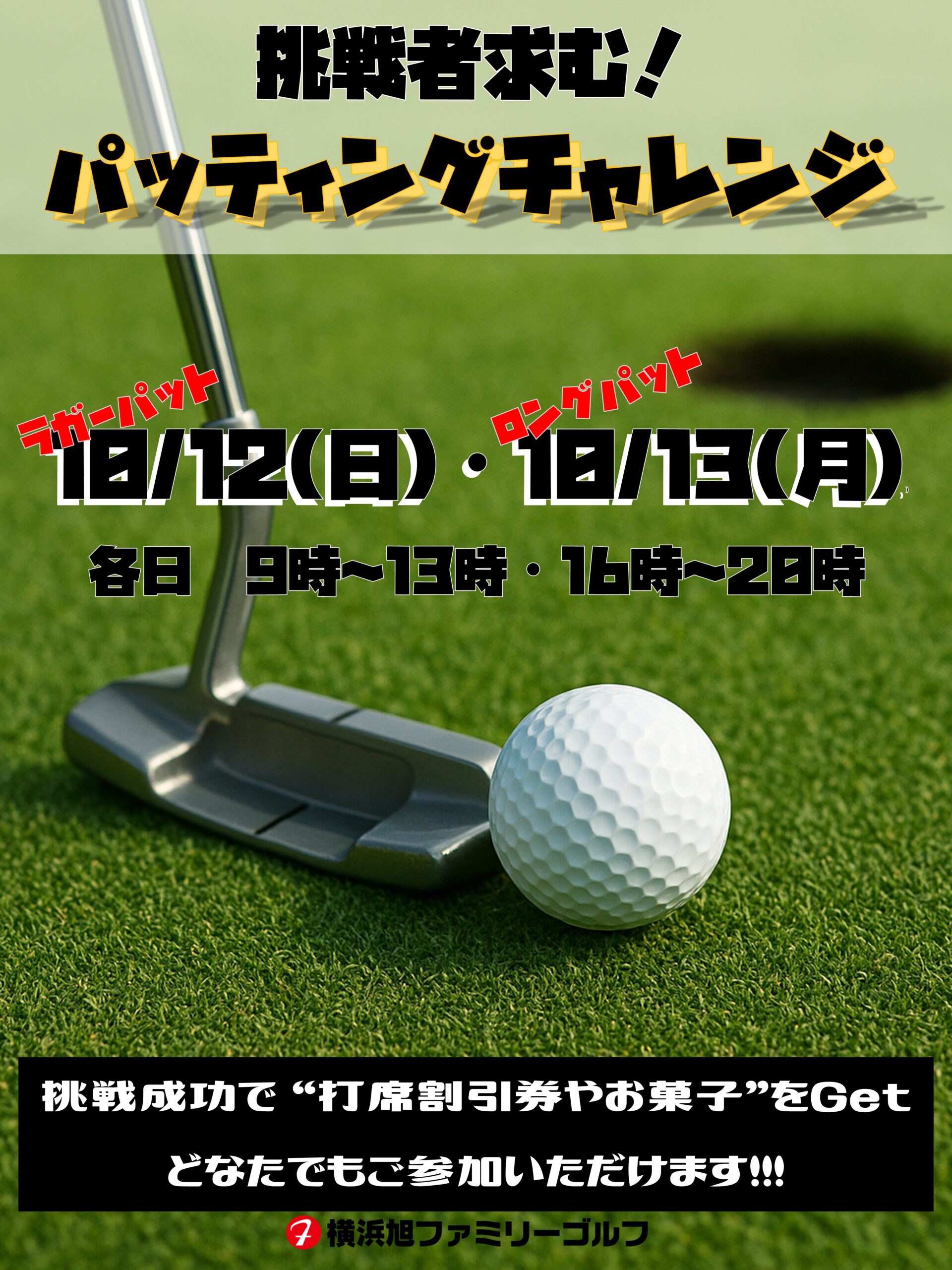 ~イベント情報~ 10月にパッティングイベントを開催いたします 参加は無料でどなたでもご参加いただけます ☆ラガーパット 10/12(日) 9時~13時 16時~20時 ラグビーボールの形状をしたボールを使用したショート…..