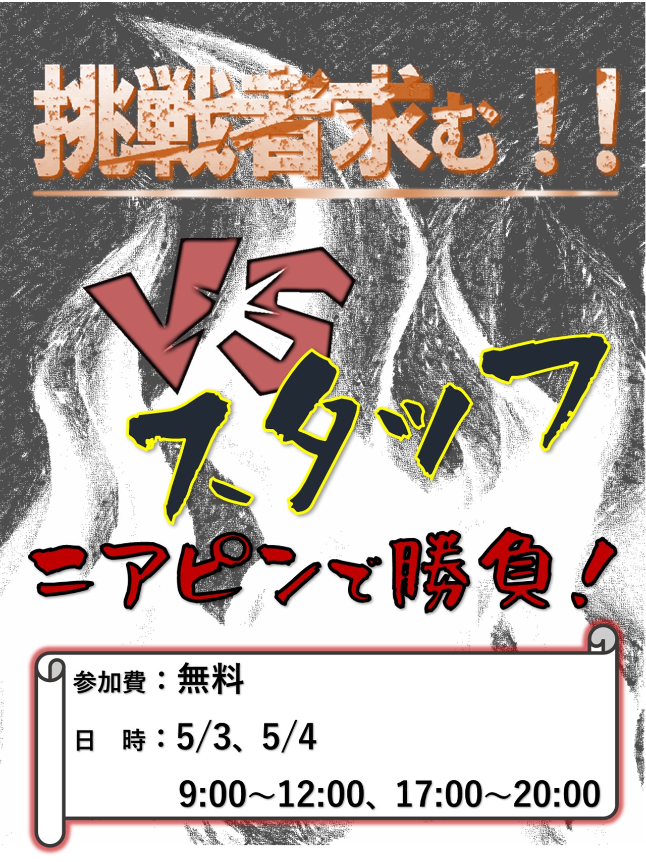 当店スタッフとニアピン対決しませんか 5/3、5/4の2日間は1番打席にて、トップトレーサーレンジのニアピンモードを使用した 45ydニアピン対決を開催いたします。 1人2球挑戦して近い方が勝ち!スタッフに勝つと割引券を…..