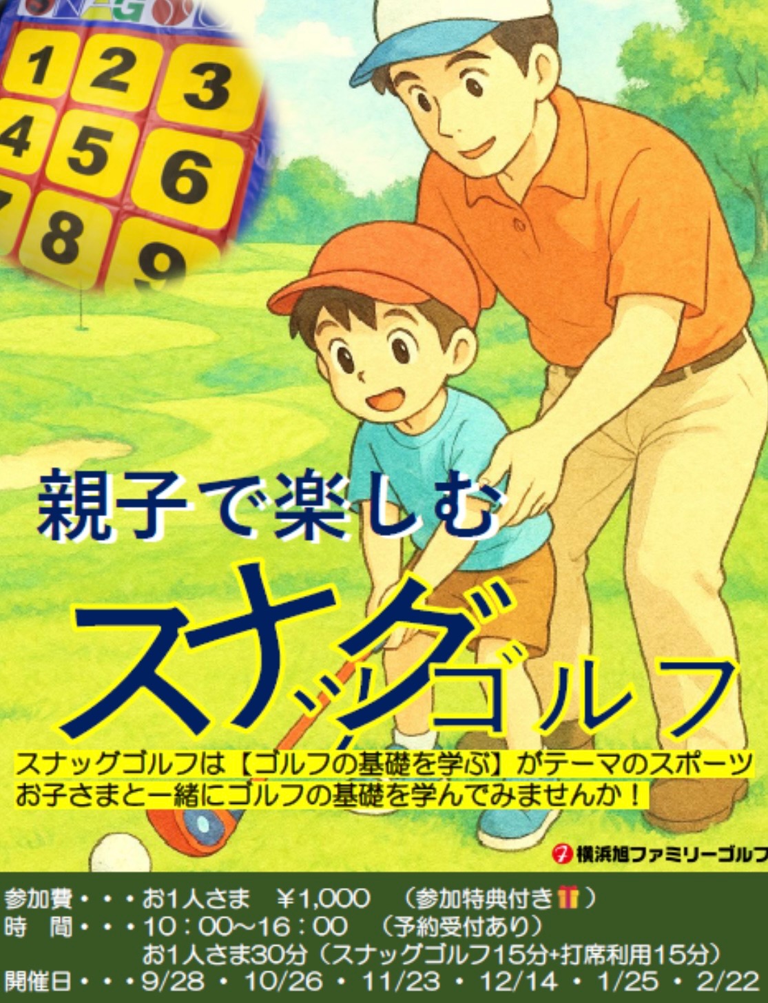 いつも当店をご利用いただき有難うございます。 【親子で基礎から学べる】スナッグゴルフを毎月1回開催いたします (開催予定日:9/28・10/26・11/23・12/14・1/25・2/22) 参加費はお1人さま¥1,00…..
