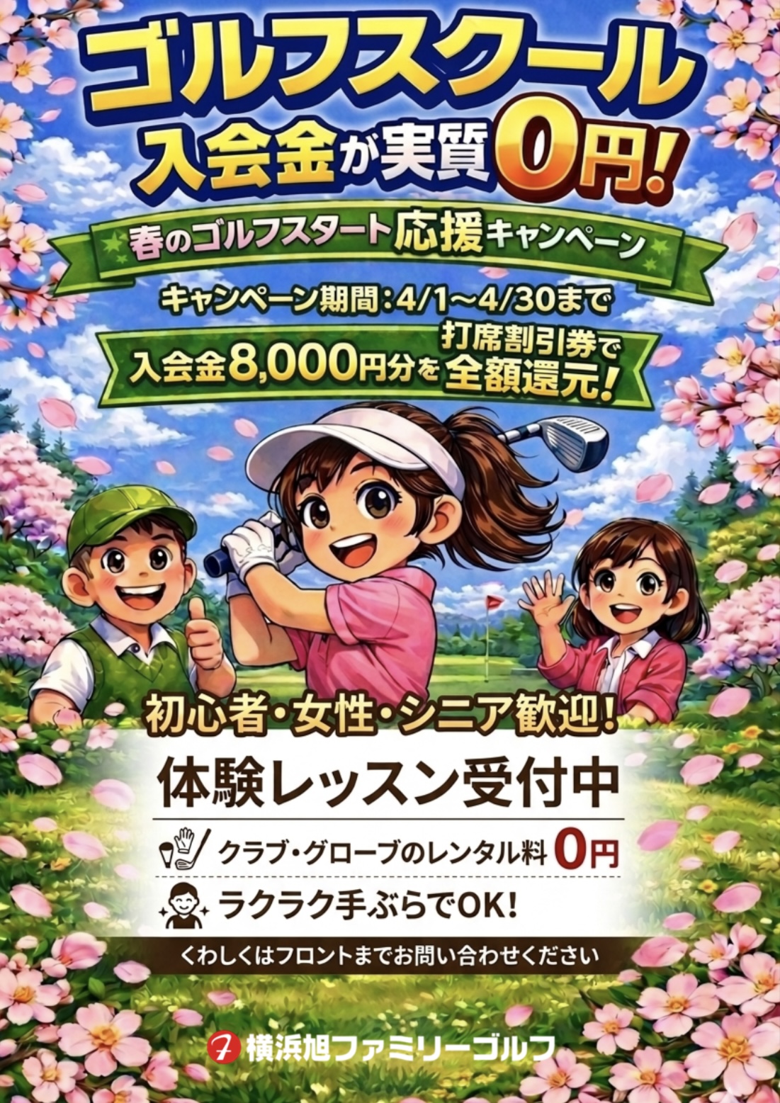 ⛳️ ゴルフスクール 入会金が実質 0円 になるお得なキャンペーン実施中! 📅キャンペーン期間 4月1日〜4月30日まで 入会金8,000円分を 打席割引券で全額還元! &#x…..